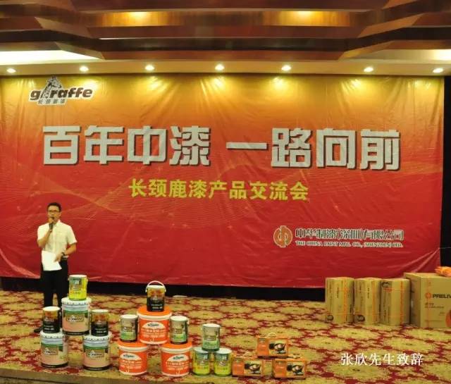2015年8月26日,由中華制漆以及長(zhǎng)頸鹿漆經(jīng)銷(xiāo)商云浮偉順攜手舉辦的長(zhǎng)頸鹿漆2015云浮產(chǎn)品交流會(huì)順利召開(kāi)并圓滿(mǎn)落幕。進(jìn)場(chǎng)嘉賓每人一頂長(zhǎng)頸鹿漆帽子,讓師傅們喜笑顏開(kāi)。會(huì)議現(xiàn)場(chǎng)高朋滿(mǎn)座,氣氛熱烈。中華制漆廣州區(qū)域負(fù)責(zé)人張欣經(jīng)理及云浮偉順董事長(zhǎng)馮漢英女士分別上臺(tái)致辭,彰顯了中漆與經(jīng)銷(xiāo)商云浮偉順強(qiáng)強(qiáng)聯(lián)手的合作關(guān)系。在會(huì)上,中漆技術(shù)服務(wù)部經(jīng)理劉欣先生生動(dòng)地講解了長(zhǎng)頸鹿漆產(chǎn)品的特點(diǎn)和工藝,吸引了近200名油工師傅們的全神貫注的目光,取得了非凡的效果。本次長(zhǎng)頸鹿漆云浮產(chǎn)品交流會(huì)的順利召開(kāi),不僅提高了長(zhǎng)頸鹿漆的品牌知名度和影響力,同時(shí)也增強(qiáng)了經(jīng)銷(xiāo)商云浮偉順的信心。