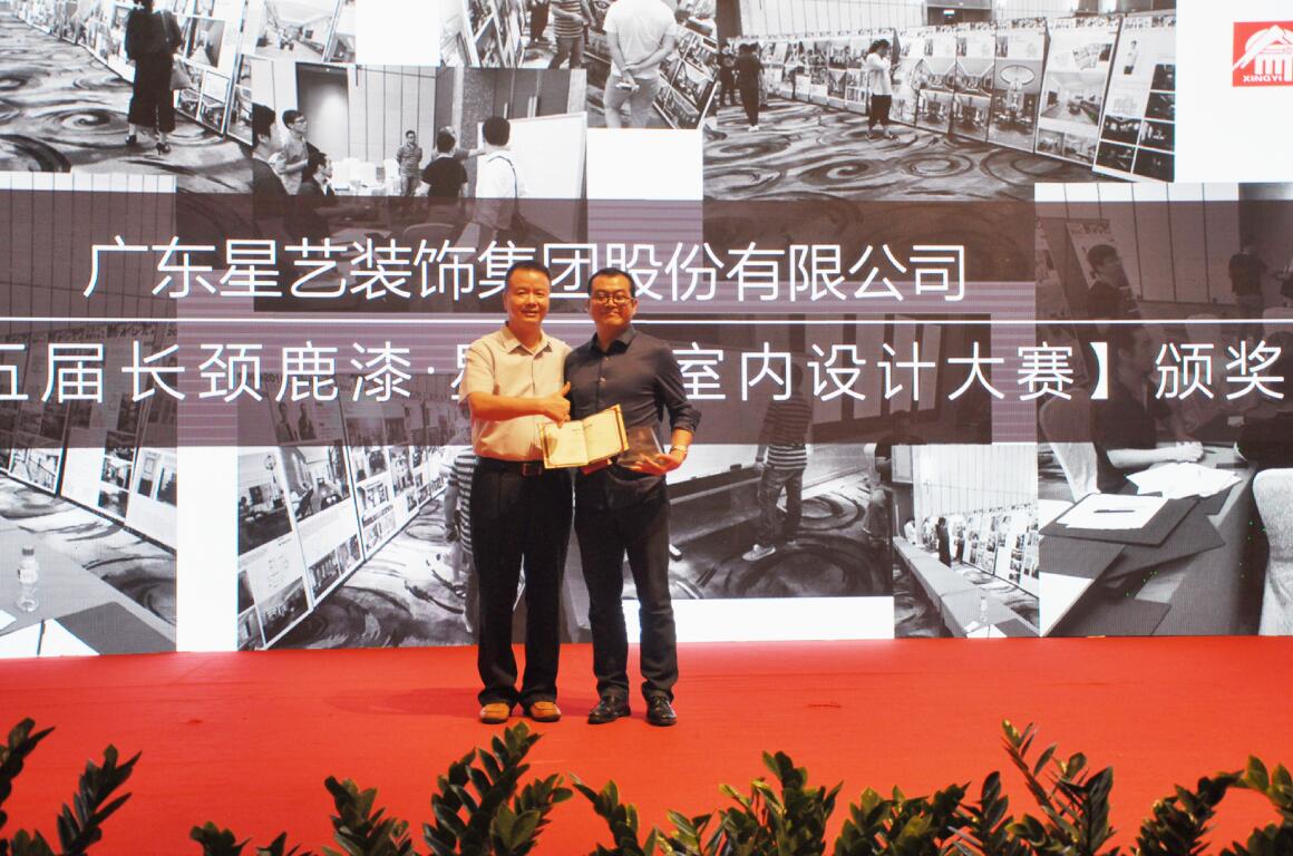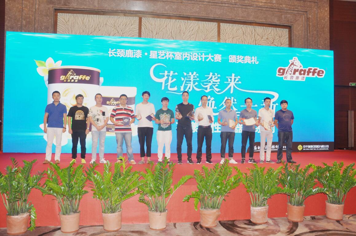 設(shè)計幸福,為愛筑巢,設(shè)計大賽群星璀璨。本次大賽共評出4個金獎,8個銀獎,12個銅獎,40個優(yōu)秀獎。中華制漆董事副總李廣中先生、區(qū)域總經(jīng)理吳愛坤先生、市場部經(jīng)理王立東先生及星藝集團領(lǐng)導(dǎo)們上臺為獲獎的設(shè)計總監(jiān)頒獎。頒獎典禮期間,星藝集團余敏總裁發(fā)表講話,表示非常感謝長頸鹿漆的冠名,感謝中華制漆蒞臨嘉賓的到來,希望能繼續(xù)保持長久堅固的合作關(guān)系。