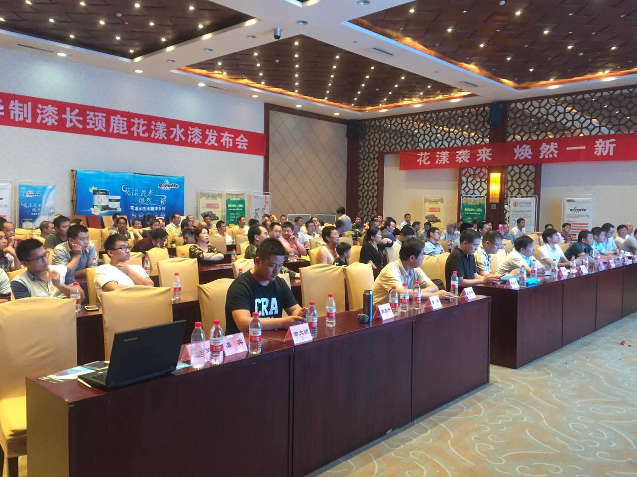 9月28日,中華制漆與紹興金橋建材有限公司在紹興飯店永和莊園酒店召開了一場盛大的中華制漆長頸鹿花漾水性木器漆發(fā)布會。中華制漆華東大區(qū)總經(jīng)理周軍先生,浙江銷售部經(jīng)理李海龍先生,市場部經(jīng)理王立東,科技服務(wù)部經(jīng)理龐大剛先生,水性漆高級化學(xué)師李冠來先生,紹興金橋建材有限公司總經(jīng)理馬金橋先生及200多名經(jīng)銷商、油工及設(shè)計(jì)師共同出席了本次盛會,此次發(fā)布會還邀請紹興當(dāng)?shù)孛襟w進(jìn)行實(shí)時(shí)地采訪宣傳。