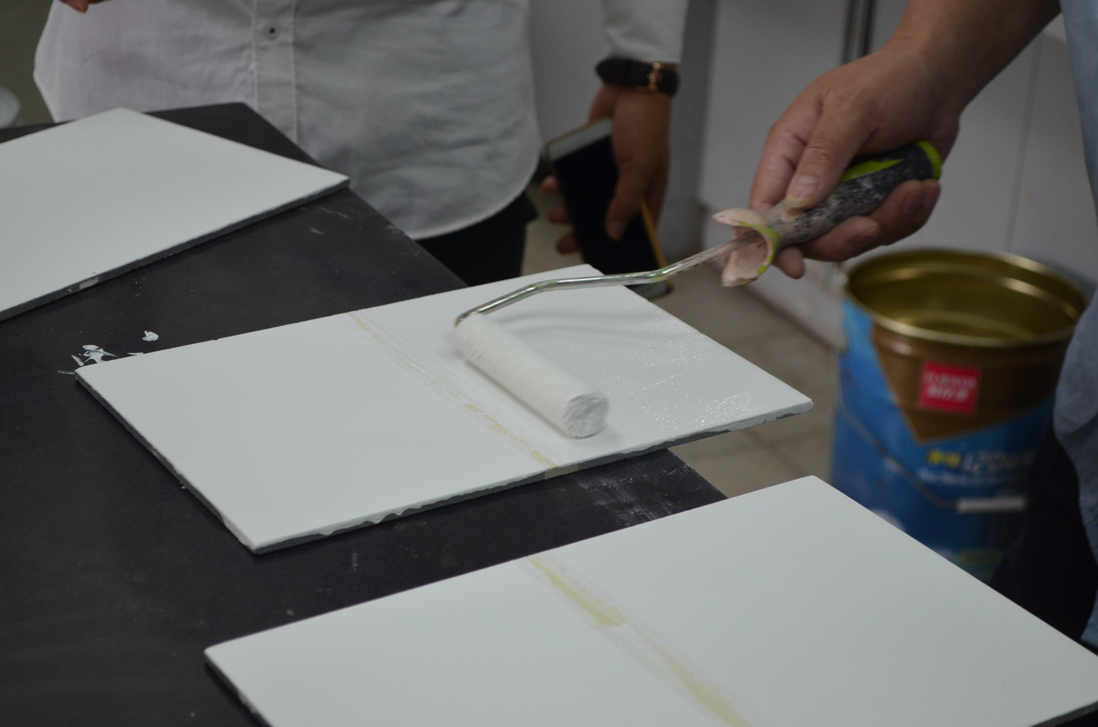 此次,考察團更為關(guān)注的是中華制漆的新技術(shù)——強效防霉無機涂料的效果。無機涂料是以無機硅酸鹽為主粘結(jié)料,涂料中有機物含量不超過5%,特別適合沿海地區(qū)、地下室等潮濕的區(qū)域。