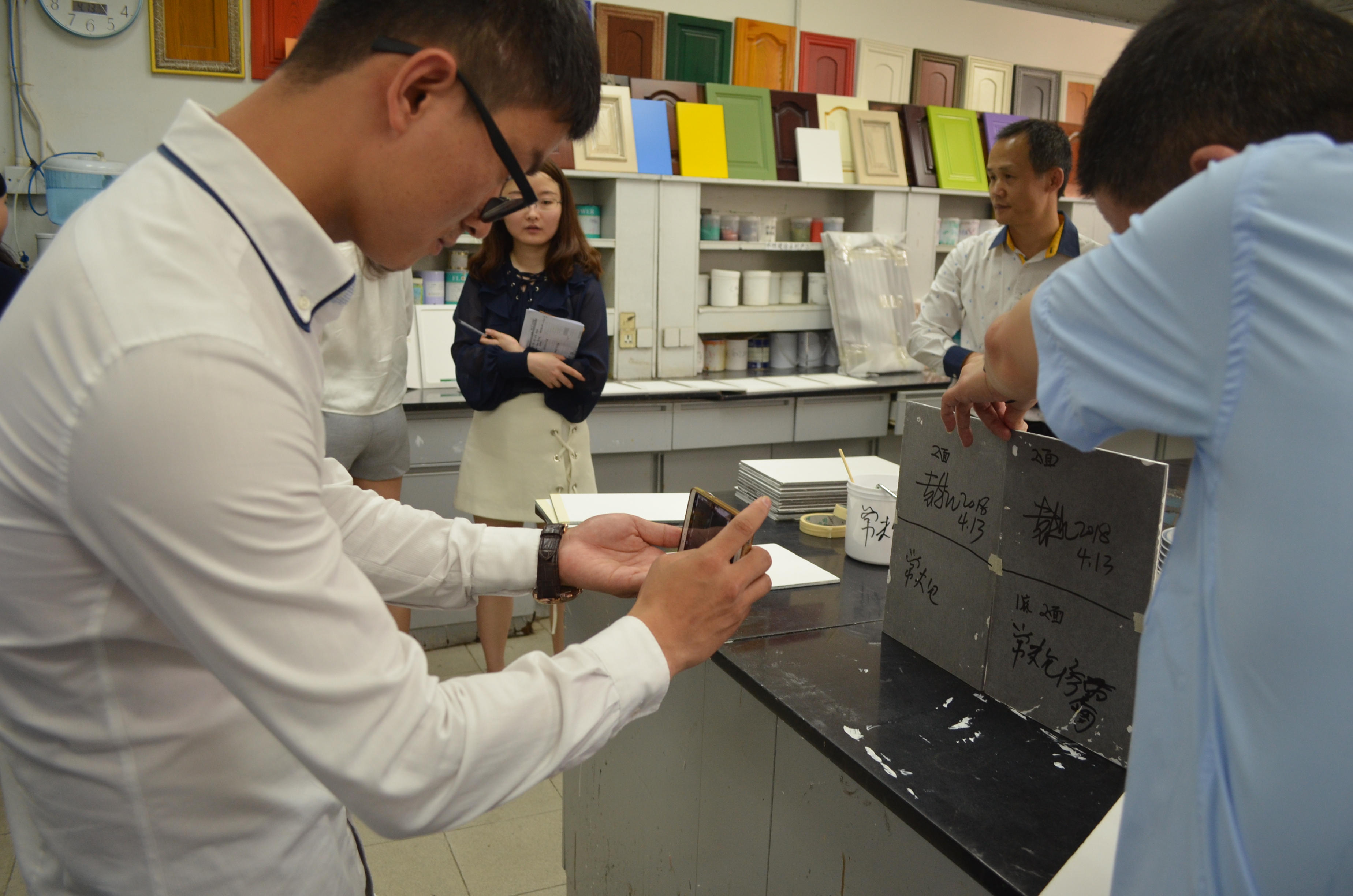 碧桂園控股有限公司(股份代號:2007.HK),總部位于廣東順德,是中國最大的新型城鎮(zhèn)化住宅開發(fā)商。采用集中及標(biāo)準(zhǔn)化的運營模式,業(yè)務(wù)包含物業(yè)發(fā)展、建安、裝修、物業(yè)管理、物業(yè)投資、酒店開發(fā)和管理等??疾靾F由采購部涂料負責(zé)人王華麗經(jīng)理、工管中心袁文亮經(jīng)理帶隊,一行五人,前來中華制漆考察交流,共同測評我司強效防霉無機涂料的性能。