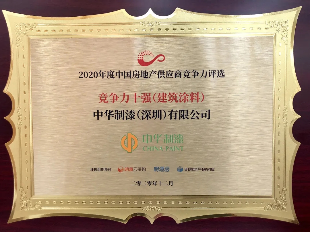 12月,以“采購(gòu)新價(jià)值,共筑新人居”為主題的2020 中國(guó)房地產(chǎn)年度采購(gòu)峰會(huì)暨精選供應(yīng)商創(chuàng)新成果展在上海隆重舉行,中華制漆憑借深厚的品牌沉淀、卓越的產(chǎn)品質(zhì)量及強(qiáng)大的建筑涂裝實(shí)力,斬獲“2020中國(guó)房地產(chǎn)供應(yīng)商行業(yè)競(jìng)爭(zhēng)力十強(qiáng)”,位居建筑涂料類榜單第五名!