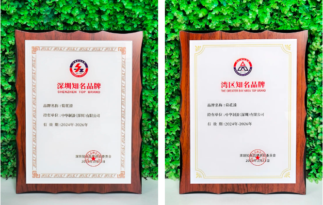 - 經(jīng)深圳知名(灣區(qū))品牌評(píng)價(jià)委員會(huì)多次會(huì)議審核,中華制漆旗下“菊花漆”品牌憑借優(yōu)質(zhì)的產(chǎn)品質(zhì)量、廣泛的市場(chǎng)認(rèn)可度和持續(xù)的創(chuàng)新精神,第六次通過(guò)“深圳知名品牌”復(fù)審,連續(xù)享譽(yù)十九年!同時(shí)獲得“灣區(qū)知名品牌”稱號(hào),再添一項(xiàng)榮譽(yù)!