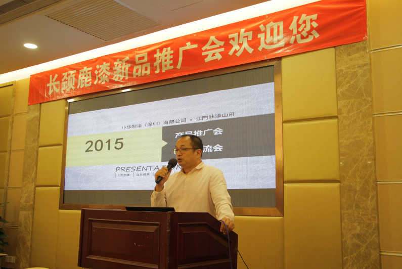 2015年10月23日,由中華制漆及長頸鹿漆經(jīng)銷商江門山莊攜手舉辦的長頸鹿漆2015年江門地區(qū)新品推廣會在江門逸豪酒店順利召開并圓滿落幕。來自江門、鶴山、臺山、開平、恩平等五邑地區(qū)70多位經(jīng)銷商、分銷商共同參加了此次會議,整個會議現(xiàn)場高朋滿座,氣氛活躍。