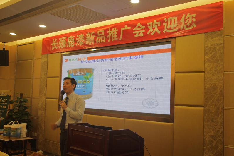 會上,中漆客戶服務(wù)中心部經(jīng)理龐大剛先生為大家講解了中華制漆的風(fēng)雨歷程、長頸鹿水漆的產(chǎn)品特點及施工工藝。自1932年創(chuàng)立以來,中華制漆不斷推出概念明確、賣點清晰的產(chǎn)品,具有前瞻性的市場策略,是一家以追求卓越的 產(chǎn)品品質(zhì)、差異化的產(chǎn)品賣點和獨特的產(chǎn)品科技創(chuàng)新為最高訴求的企業(yè)。另外,龐大剛先生逐一詳細(xì)地為大家講解了長頸鹿牌金裝環(huán)保型水性木器漆,清怡抗劃傷水性木器漆,長頸鹿牌清怡水性磁漆,長頸鹿牌乳膠漆(“凈味120”硅藻竹炭全效內(nèi)墻乳膠漆、抗污凈味兒童漆、負(fù)離子凈味內(nèi)墻乳膠漆)等產(chǎn)品并對其特點、施工工藝等均進行了詳細(xì)的介紹,使在場各位嘉賓更加深入地了解。大家均全神貫注地聆聽,收獲頗豐。