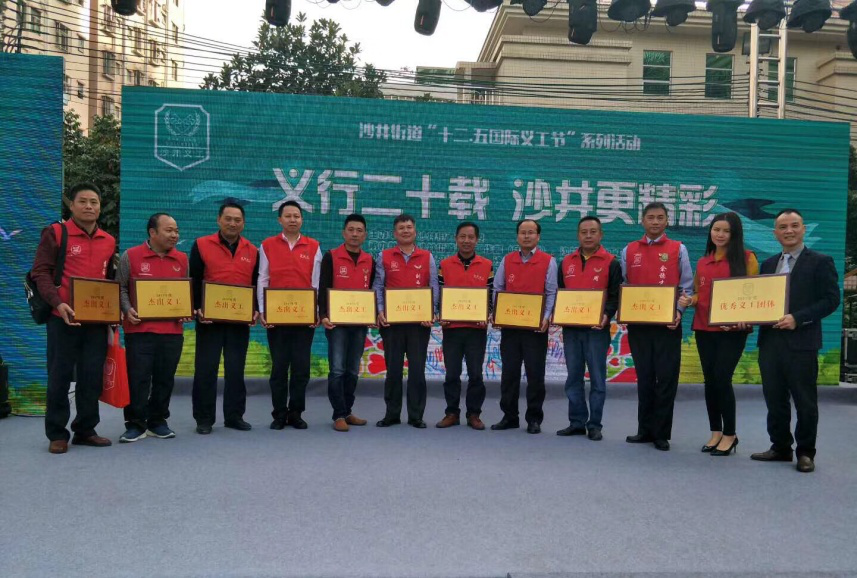 2017年12月9日,沙井街道團(tuán)工委(義工聯(lián))于蠔四社區(qū)舉辦大型義工嘉年華活動(dòng)?;顒?dòng)現(xiàn)場(chǎng),沙井街道團(tuán)工委(義工聯(lián))授予表彰了2017年度積極參加沙井街道組織各項(xiàng)義工活動(dòng),且在義工活動(dòng)中起到先鋒模范作用的先進(jìn)義工及團(tuán)隊(duì)。