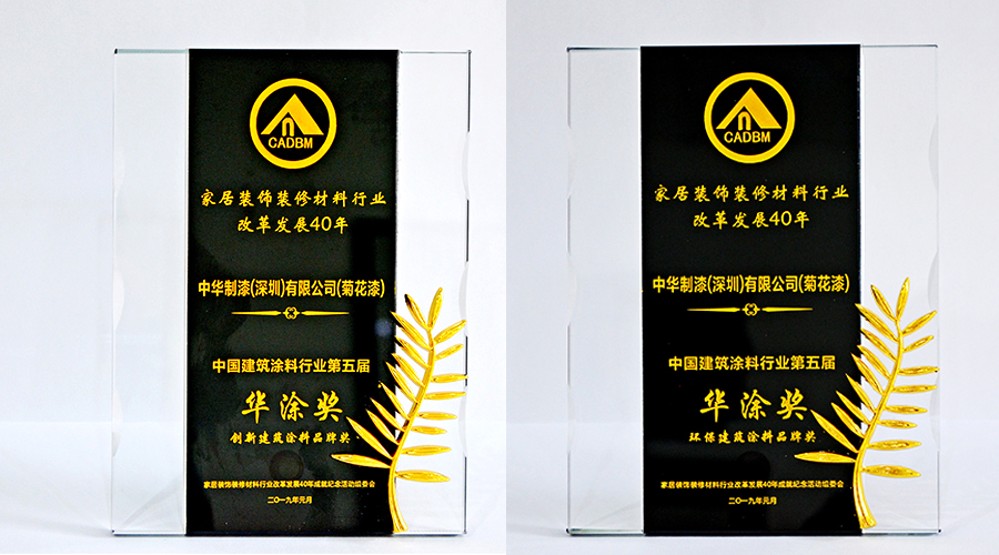 華涂獎(jiǎng)由中國(guó)建筑裝飾裝修材料協(xié)會(huì)、中國(guó)建筑裝飾裝修材料協(xié)會(huì)建筑涂料分會(huì)組織開(kāi)展評(píng)選,旨在提高我國(guó)建筑涂料行業(yè)品牌企業(yè)知名度,加強(qiáng)行業(yè)自主知識(shí)產(chǎn)權(quán)保護(hù),增強(qiáng)企業(yè)的綜合競(jìng)爭(zhēng)力,培育更多建筑涂料行業(yè)優(yōu)秀品牌。截止到今年,菊花漆已連續(xù)13年獲得“深圳知名品牌”稱(chēng)號(hào),也多次榮獲香港名牌、2017華涂獎(jiǎng)外墻建筑涂料品牌獎(jiǎng)等多項(xiàng)榮譽(yù)。