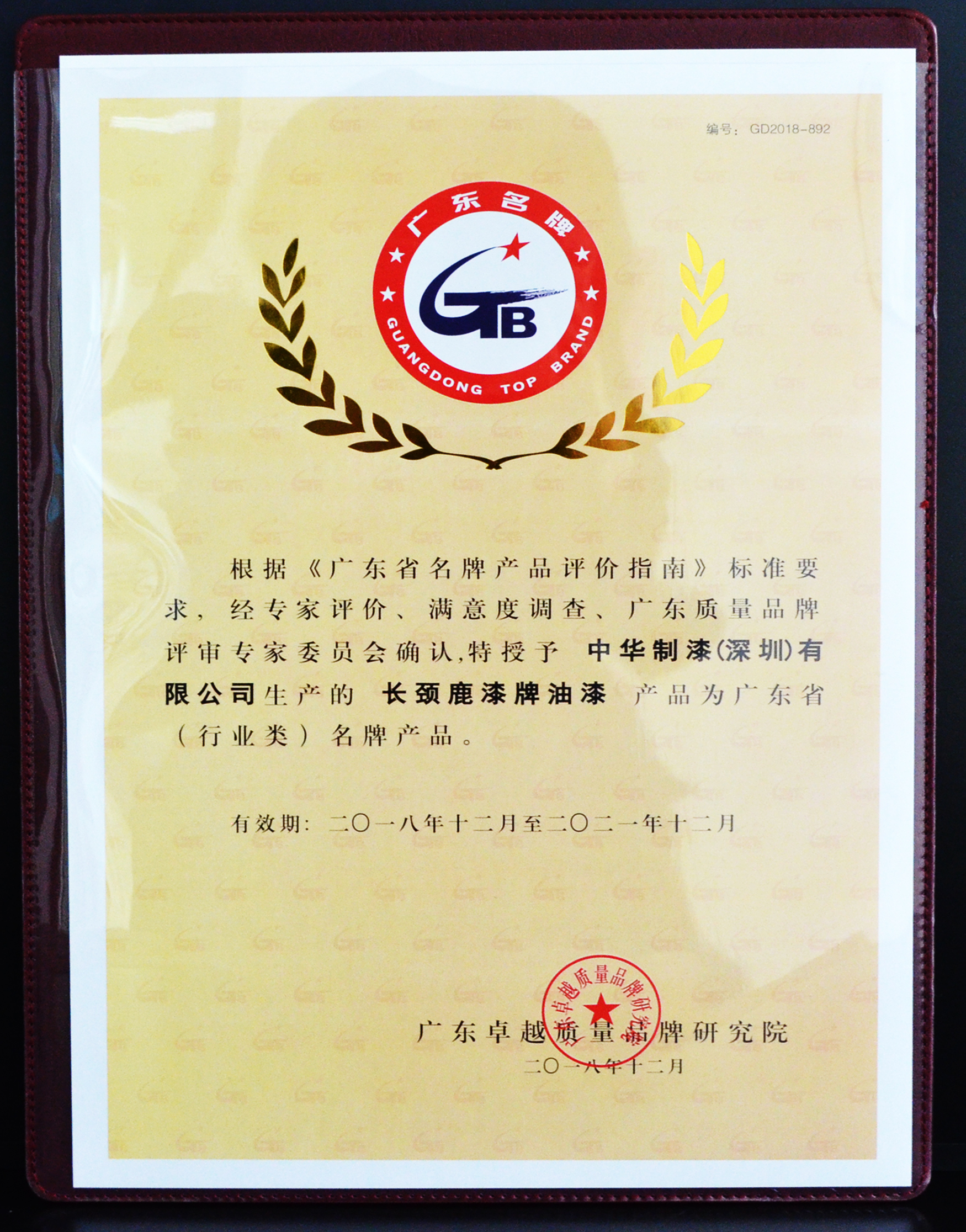 根據(jù)《廣東省名牌產(chǎn)品評(píng)價(jià)指南》標(biāo)準(zhǔn)要求,經(jīng)申報(bào)資料初審、申報(bào)數(shù)據(jù)公示、企業(yè)現(xiàn)場(chǎng)審查、專家綜合評(píng)價(jià)、廣東質(zhì)量品牌評(píng)審專家委員會(huì)審議確認(rèn),中華制漆長(zhǎng)頸鹿漆牌油漆產(chǎn)品榮獲“廣東?。ㄐ袠I(yè)類)名牌產(chǎn)品”稱號(hào)。