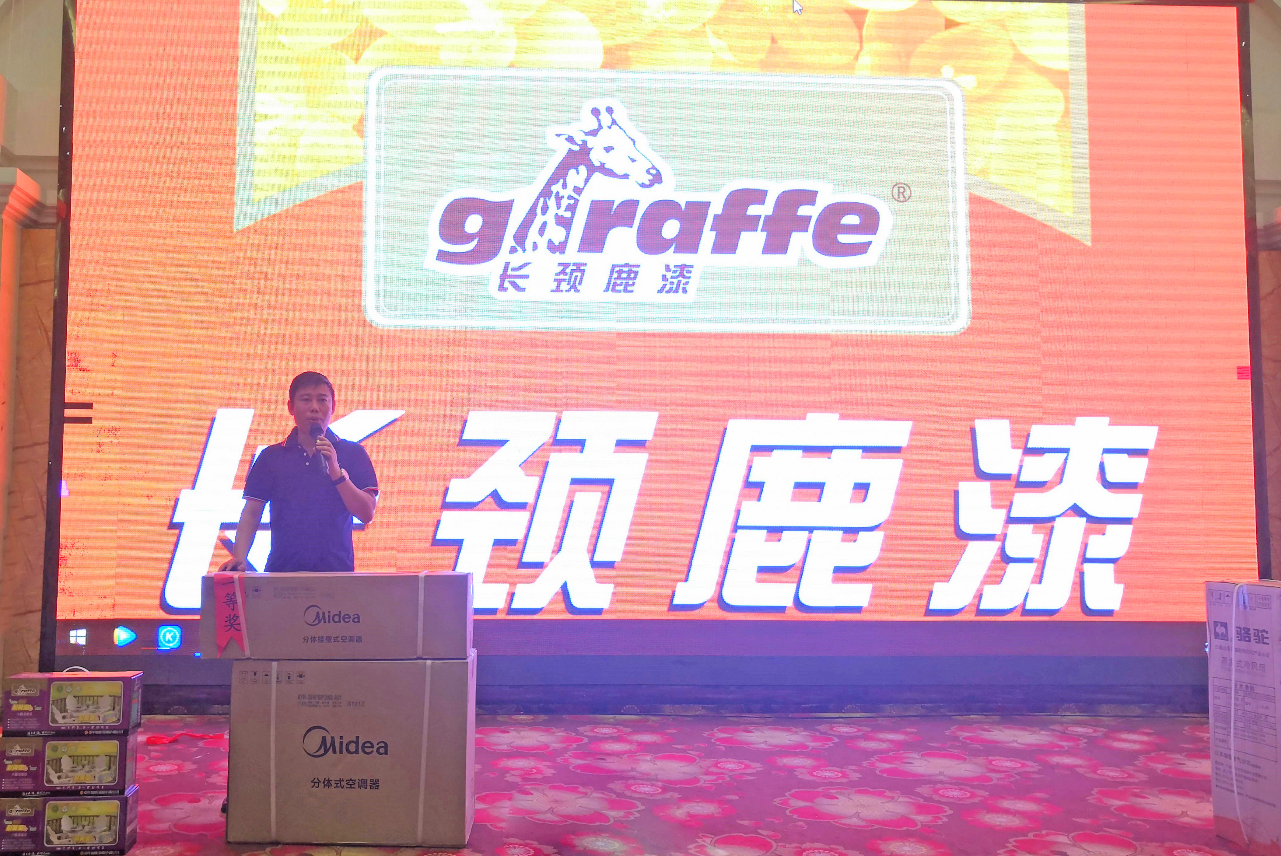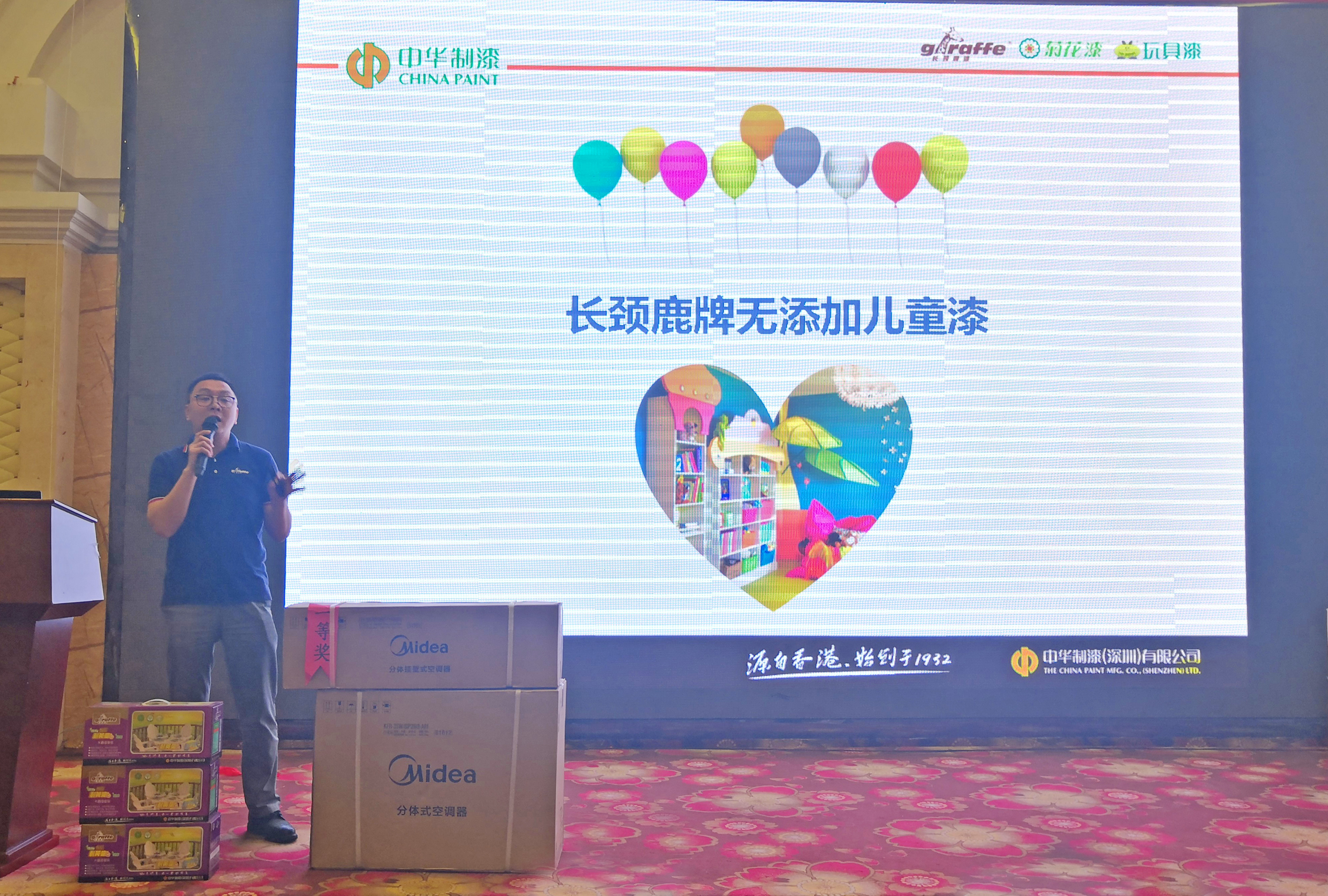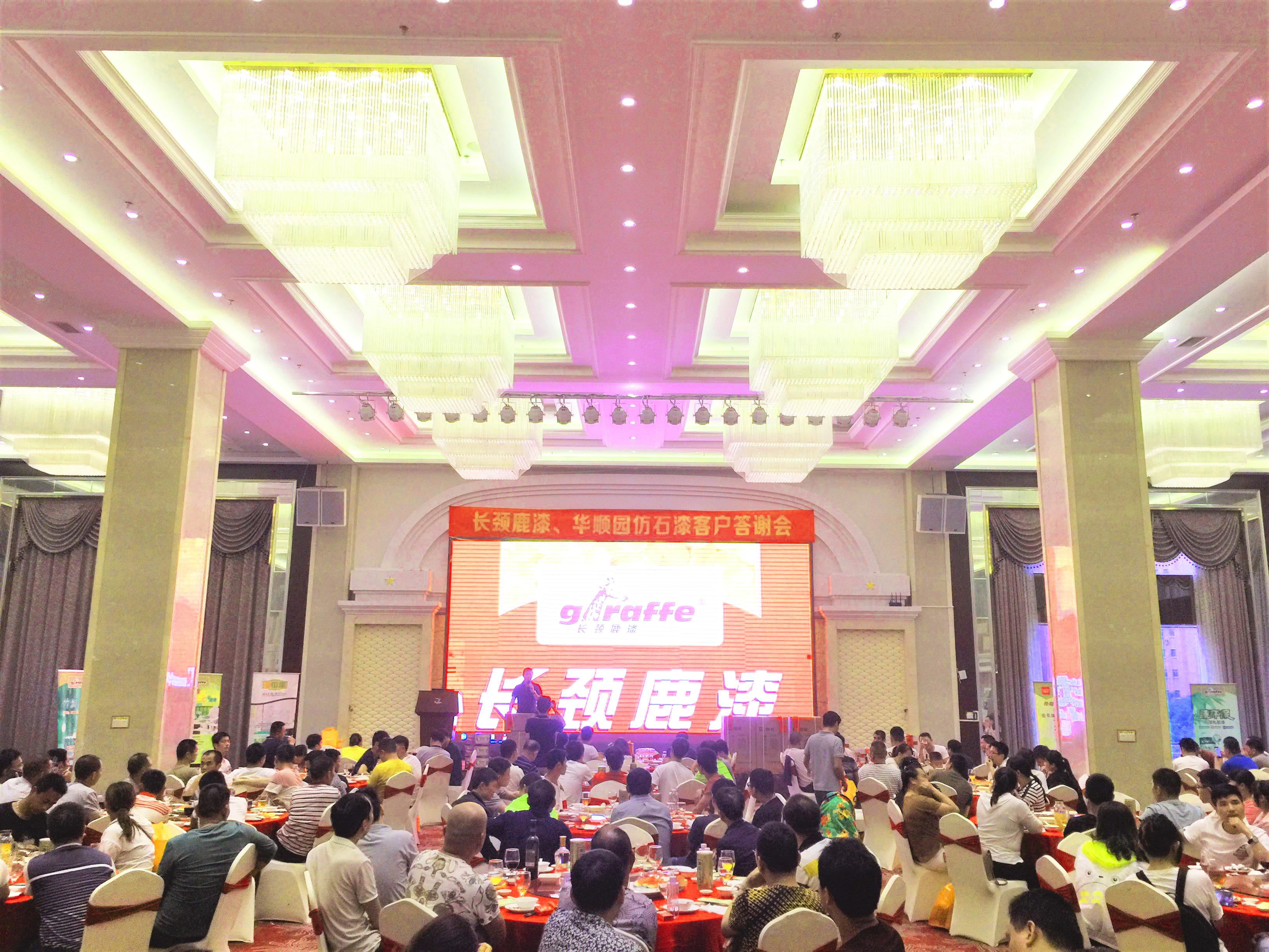 2019年4月25日,中華制漆與泉州華順園裝飾材料有限公司在惠安偉華國際酒店共同舉辦了“長頸鹿漆2019惠安地區(qū)答謝會”,中華制漆技術服務部盧國強先生、中華制漆福建省銷售經(jīng)理林杰先生、泉州華順園裝飾材料有限公司總經(jīng)理蘇志堅先生等人受邀出席本次答謝會。