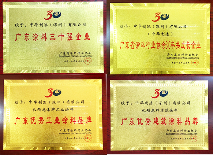 廣東省涂料行業(yè)協(xié)會(huì)是在上世紀(jì) 80年代末成立的涂料工業(yè)協(xié)會(huì),擁有一批資深涂料專家和工程技術(shù)人員,服務(wù)于全省涂料行業(yè)。本次大會(huì)旨在紀(jì)念廣東省涂料行業(yè)協(xié)會(huì)成立30周年,全面展示廣東涂料30年來所取得的顯著成就,并從中找到“廣東涂料再出發(fā)”的源動(dòng)力。此次,中華制漆再次以品牌彰顯實(shí)力,憑實(shí)力贏得認(rèn)可,斬獲“廣東涂料30強(qiáng)企業(yè)”、“廣東省涂料行業(yè)協(xié)會(huì)30年共成長(zhǎng)企業(yè)”榮譽(yù),旗下長(zhǎng)頸鹿漆獲得“廣東優(yōu)秀建筑涂料品牌”榮譽(yù),玩具牌獲得“廣東優(yōu)秀工業(yè)涂料品牌”榮譽(yù)。