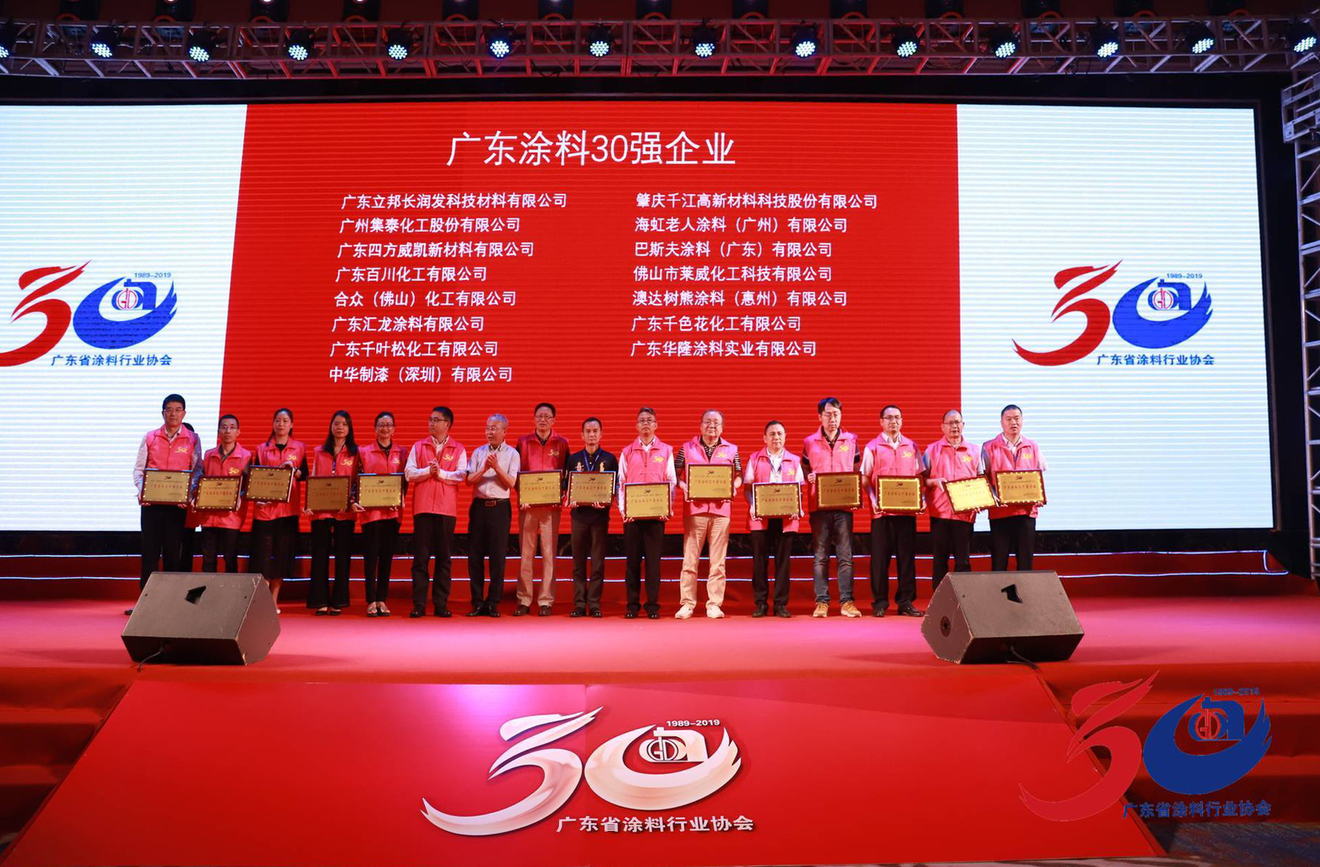 近期,“廣東省涂料行業(yè)協(xié)會(huì)30周年慶典暨2019廣東涂料產(chǎn)業(yè)發(fā)展大會(huì)”在江門鶴山福朋喜來登酒店隆重舉行。中華制漆廣州區(qū)域銷售經(jīng)理曾健明先生代表出席表彰大會(huì),現(xiàn)場(chǎng)600余人共襄盛舉。
