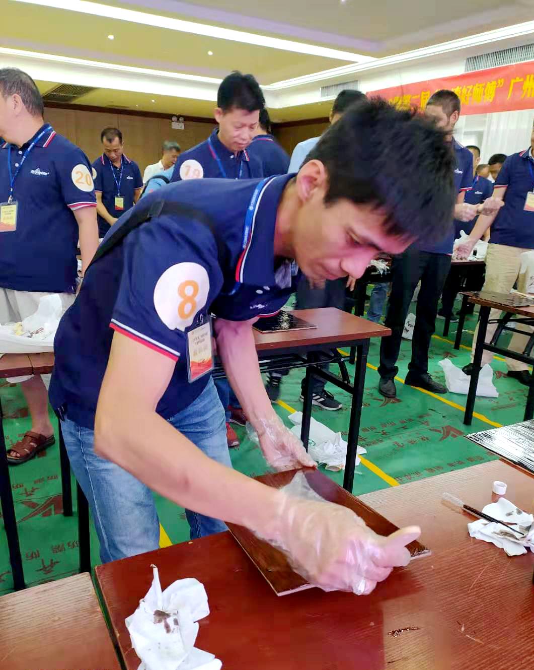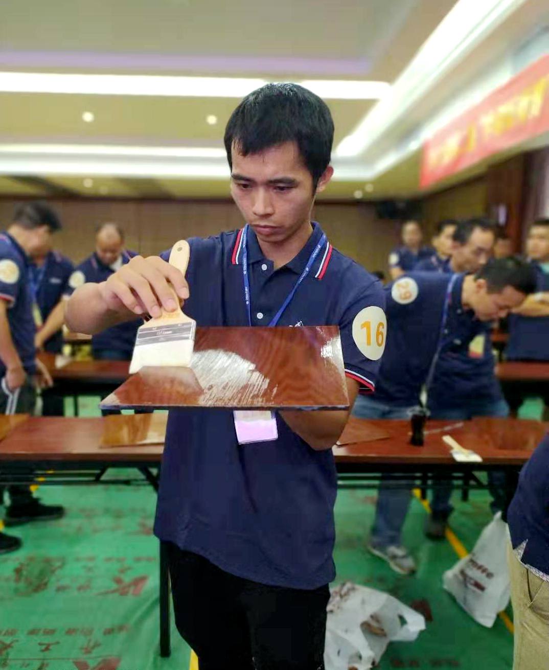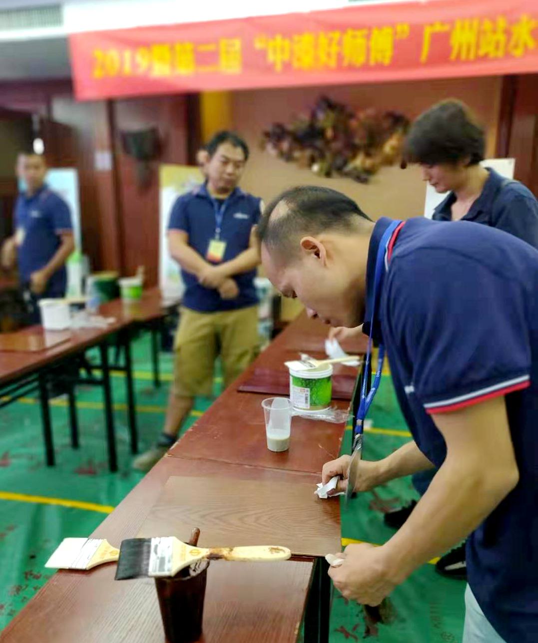 工藝競賽正式開始前,中華制漆廣州區(qū)域經(jīng)理張欣先生作了精彩致辭。張經(jīng)理指出了水性木器漆在家具、裝修裝飾、建筑、工業(yè)等多個領(lǐng)域有著重要應(yīng)用,并表示隨著研發(fā)技術(shù)的發(fā)展,行業(yè)的轉(zhuǎn)型升級,人們對安全環(huán)保涂料的追求,都將使水性木器漆在未來蘊(yùn)藏著巨大需求量。中華制漆將與每一位涂刷工匠,共同推動水性木器漆的廣泛應(yīng)用,相信水性木器漆產(chǎn)品在未來必將打開更廣闊的市場,迎來更光明的前景。同時,張經(jīng)理也殷切地表達(dá)了對此次參賽選手們的深切厚望,希望他們能以輕松的心態(tài),精湛的技藝,在比賽中超常發(fā)揮,力爭上游,展現(xiàn)出自己真