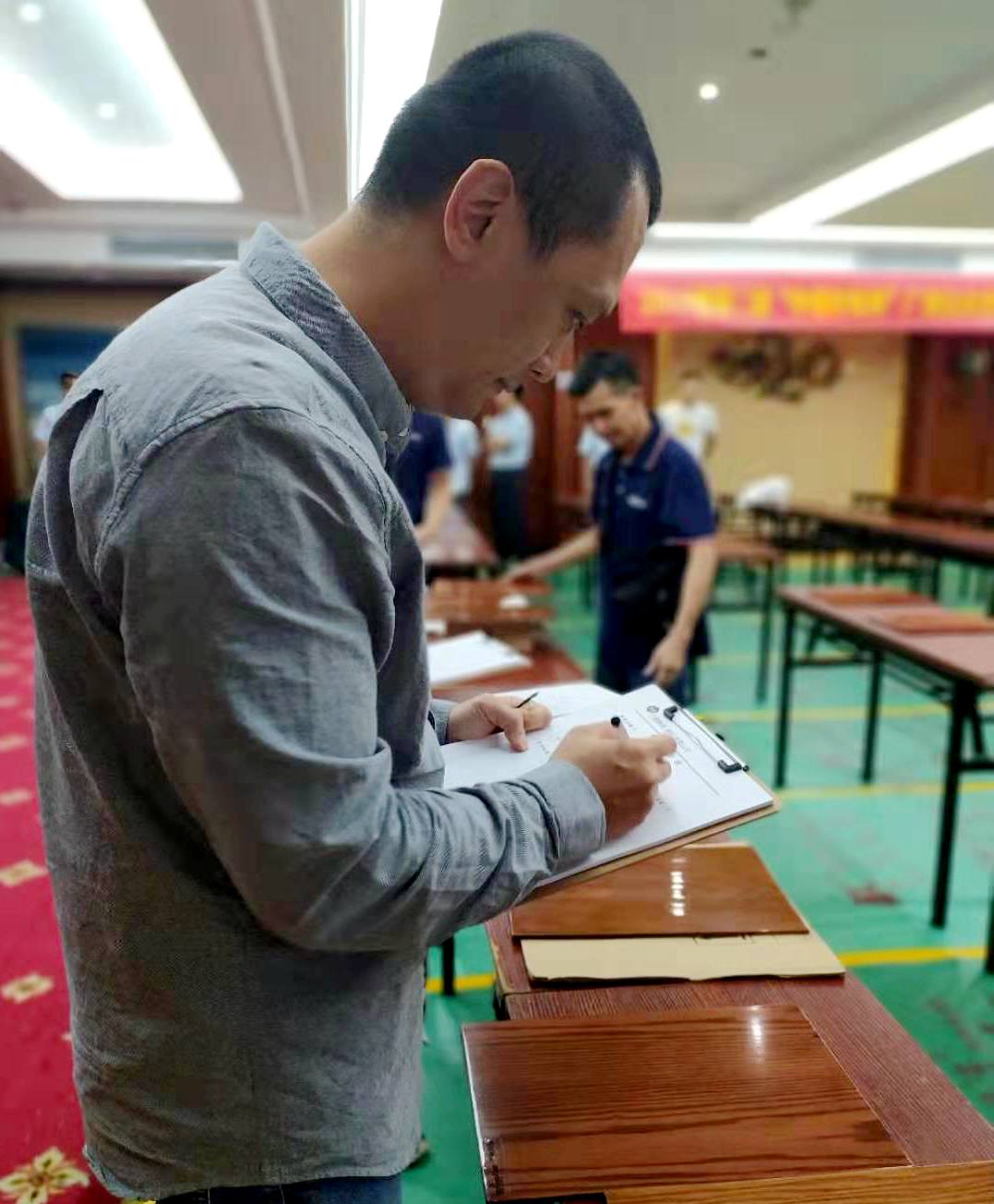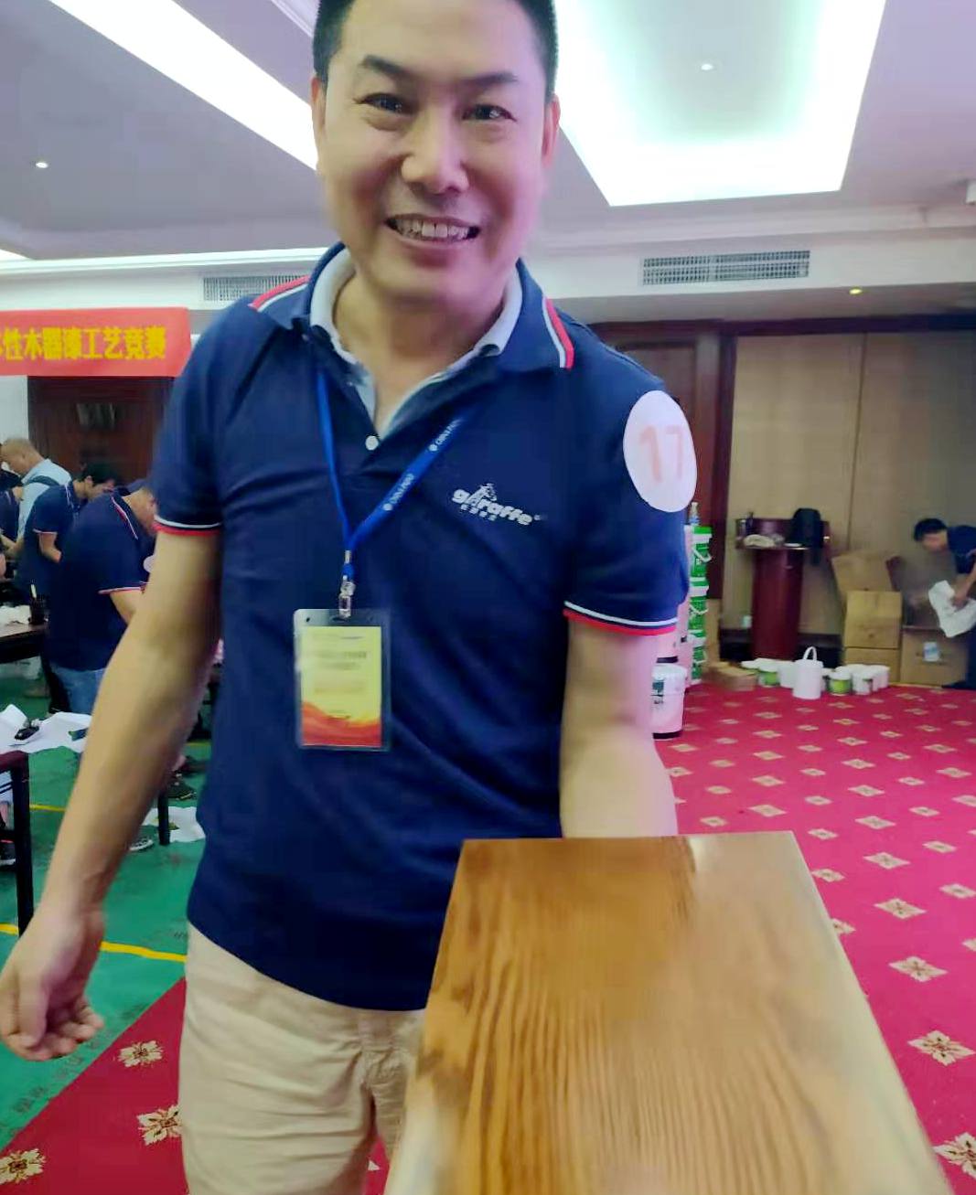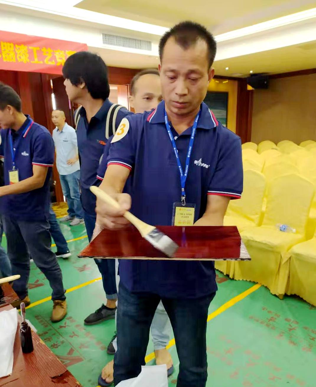 工藝競賽正式開始前,中華制漆廣州區(qū)域經(jīng)理張欣先生作了精彩致辭。張經(jīng)理指出了水性木器漆在家具、裝修裝飾、建筑、工業(yè)等多個領(lǐng)域有著重要應(yīng)用,并表示隨著研發(fā)技術(shù)的發(fā)展,行業(yè)的轉(zhuǎn)型升級,人們對安全環(huán)保涂料的追求,都將使水性木器漆在未來蘊(yùn)藏著巨大需求量。中華制漆將與每一位涂刷工匠,共同推動水性木器漆的廣泛應(yīng)用,相信水性木器漆產(chǎn)品在未來必將打開更廣闊的市場,迎來更光明的前景。同時,張經(jīng)理也殷切地表達(dá)了對此次參賽選手們的深切厚望,希望他們能以輕松的心態(tài),精湛的技藝,在比賽中超常發(fā)揮,力爭上游,展現(xiàn)出自己真