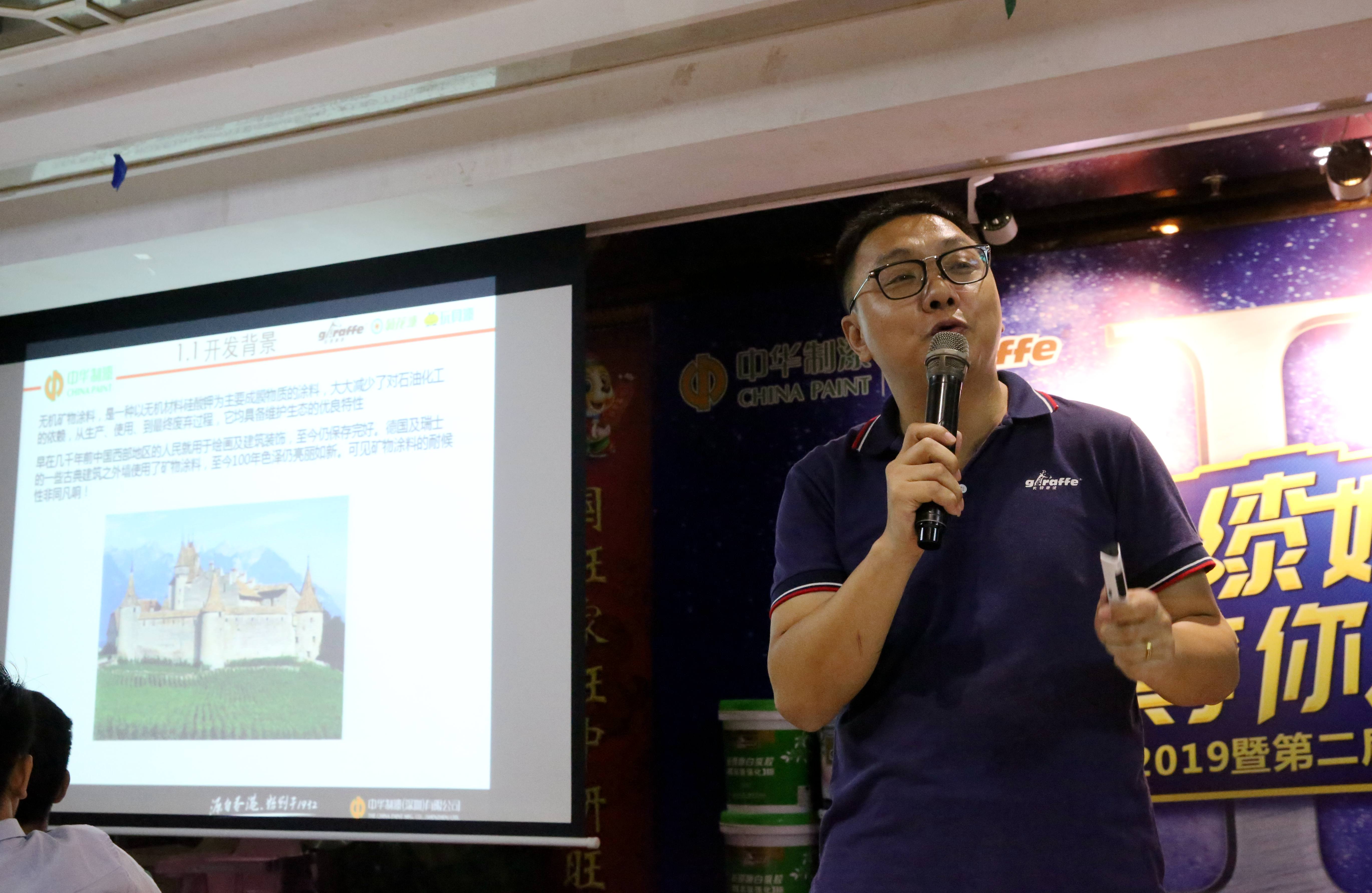晚宴開始前,中華制漆技術(shù)服務(wù)部經(jīng)理盧國強(qiáng)先生為大家專業(yè)講解了當(dāng)今熱門的無機(jī)涂料。中華制漆無機(jī)涂料以無機(jī)硅酸鹽為主粘結(jié)料,涂料中有機(jī)物含量不超過5%,集最高級別防霉——0級防霉和A級防火抗燃性于一身,無需底漆即可直接施工,在防腐防霉、阻燃、抗潮、耐老化等多方面有著優(yōu)異的性能,特別適合沿海地區(qū)、地下室等潮濕的環(huán)境使用。這樣的產(chǎn)品培訓(xùn)講解,不僅是對無機(jī)涂料的普及,更是為廣大工匠師傅拓展知識面,實現(xiàn)自我增值、提升工作技能提供了良好機(jī)會。
