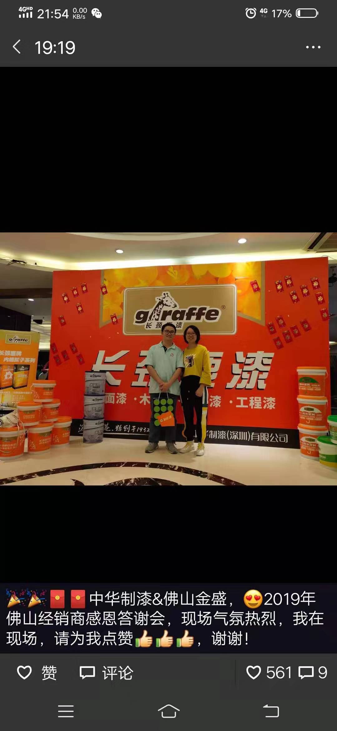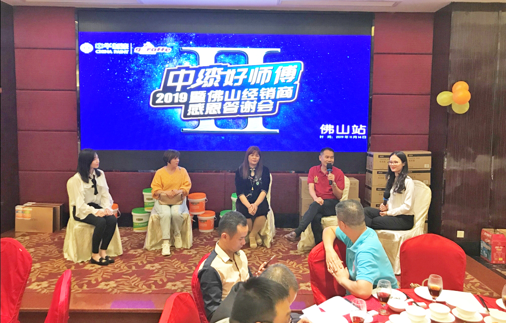 2019年11月14日,由中華制漆攜手長(zhǎng)頸鹿漆經(jīng)銷(xiāo)商佛山金盛聯(lián)合舉辦的2019“中漆好師傅”佛山經(jīng)銷(xiāo)商感恩答謝會(huì)完美收官,現(xiàn)場(chǎng)訂貨額超四百萬(wàn)元。本次感恩答謝會(huì)邀請(qǐng)了上百名分銷(xiāo)商客戶(hù)參加,中漆集團(tuán)執(zhí)行董事兼銷(xiāo)售董事李廣中先生、中華制漆區(qū)域總經(jīng)理吳愛(ài)坤先生、中華制漆佛山區(qū)域經(jīng)理曾健明先生、中華制漆技術(shù)服務(wù)部經(jīng)理盧國(guó)強(qiáng)先生,以及佛山金盛董事長(zhǎng)龐月歡女士、總經(jīng)理陳賢敏女士、財(cái)務(wù)總監(jiān)吳惠萍女士出席會(huì)議,會(huì)場(chǎng)高朋滿(mǎn)座,氣氛熱烈。