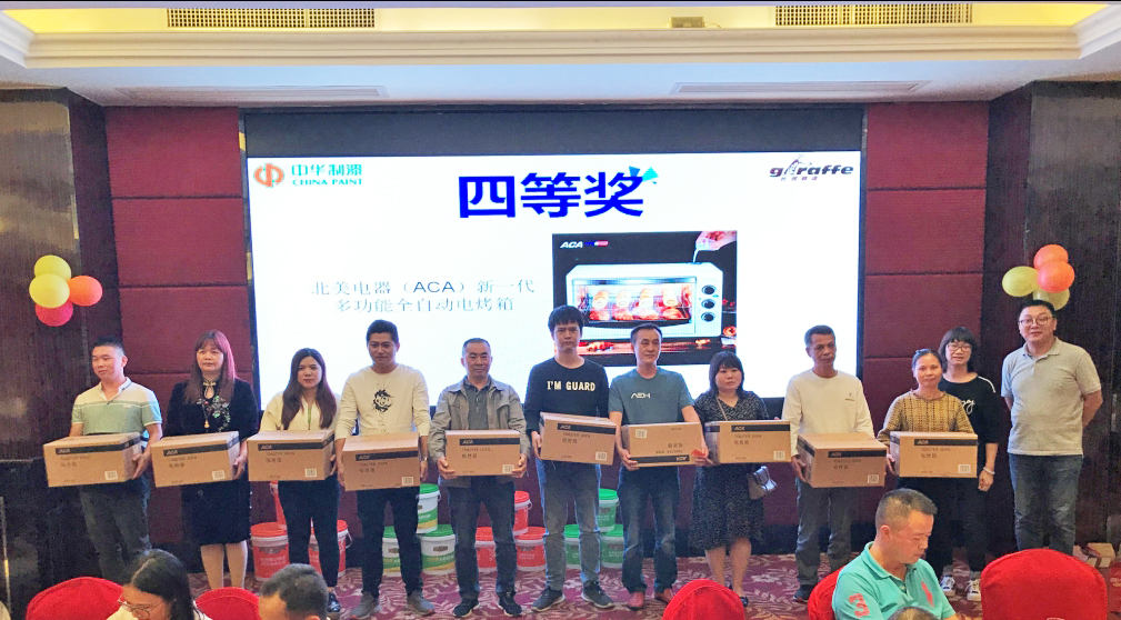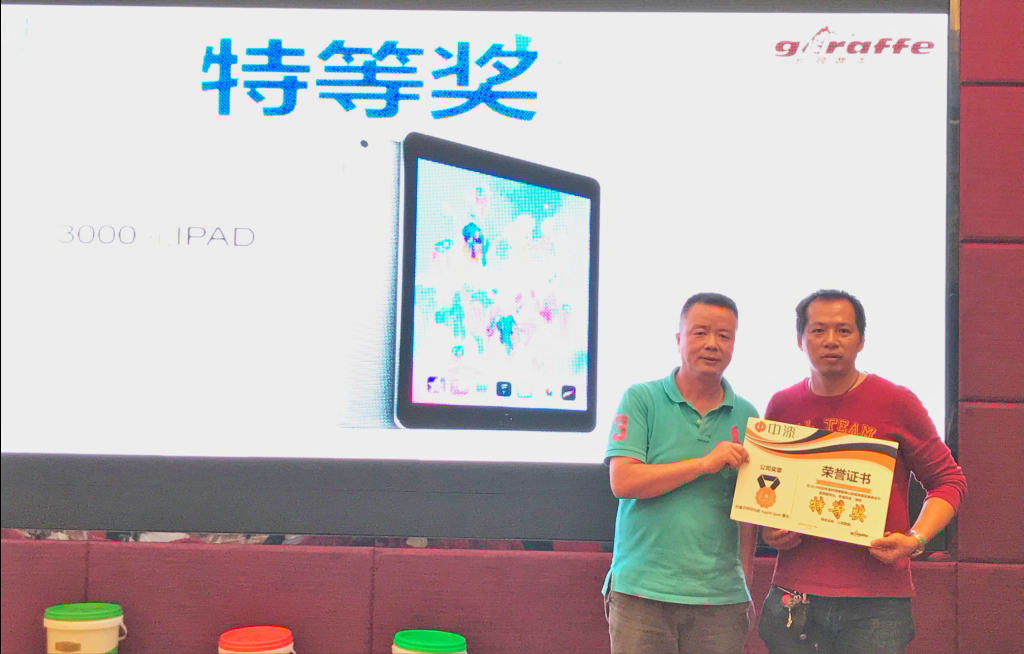 頒獎(jiǎng)典禮率先頒發(fā)的是“最佳合作獎(jiǎng)”,答謝及鼓勵(lì)長(zhǎng)期以來(lái)一直支持中華制漆的客戶(hù)。隨即進(jìn)行一系列的幸運(yùn)抽獎(jiǎng)環(huán)節(jié),現(xiàn)場(chǎng)客戶(hù)通過(guò)現(xiàn)場(chǎng)訂貨,獲取相應(yīng)數(shù)量的抽獎(jiǎng)券進(jìn)行抽獎(jiǎng)。獎(jiǎng)品極其豐厚,特等獎(jiǎng)禮品更是最新一代IPAD產(chǎn)品,難怪獲獎(jiǎng)?wù)呔冻隽藵M(mǎn)足的笑容。
