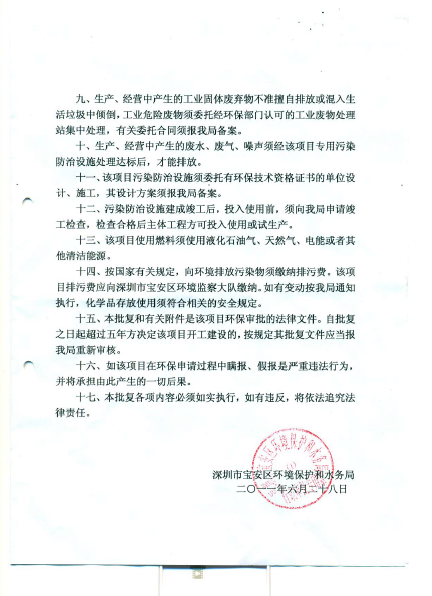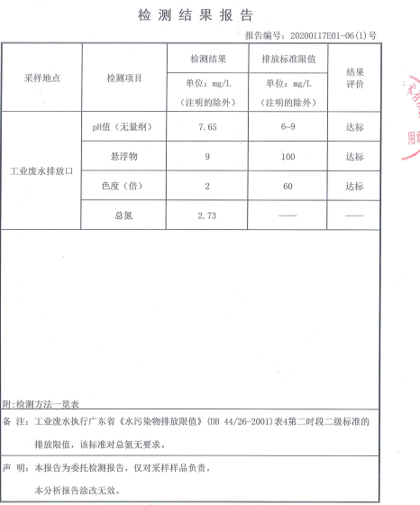 公司通過ISO 9001質(zhì)量管理體系、ISO 14001環(huán)境管理體系、IECQ-QC080000有害物質(zhì)過程管理體系、OHSAS 18001職業(yè)健康安全管理體系認(rèn)證。根據(jù)公司產(chǎn)品性質(zhì),公司廢水處理采用活性污泥法連續(xù)性處理廢水。自1993年10月份投資近百萬元興建的污水處理站項(xiàng)目正常運(yùn)行以來,日處理能力達(dá)50噸,達(dá)到國家二級(jí)排放標(biāo)準(zhǔn)水污染物排放限值(DB4426-2001);公司于2016年投入30多萬對(duì)廢水處理系統(tǒng)進(jìn)行升級(jí)維護(hù),保證了廢水的處理持續(xù)穩(wěn)定達(dá)標(biāo)。