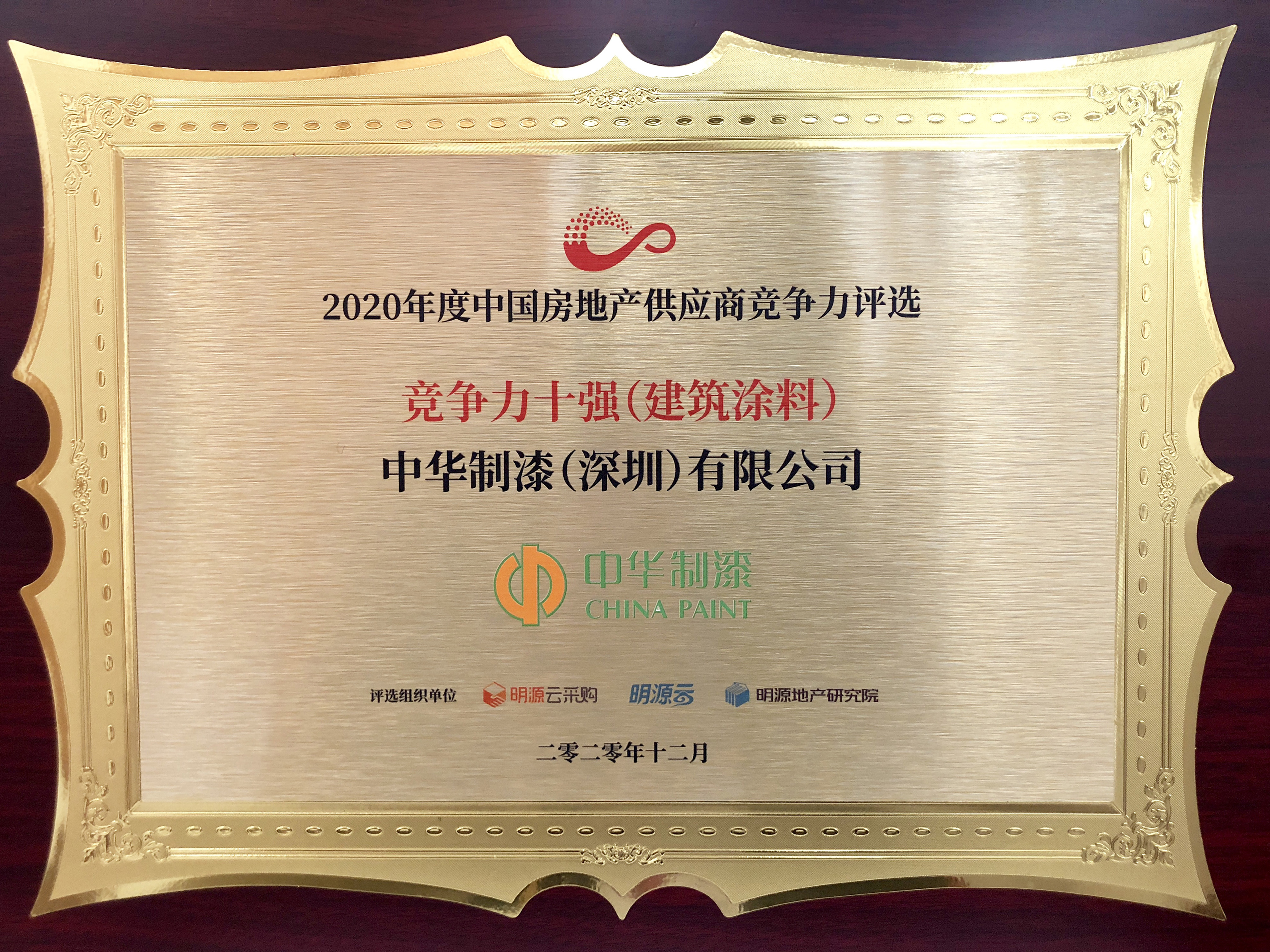 2020年12月10日—11日,由明源云采購、明源地產(chǎn)研究院聯(lián)合舉辦的“采購新價值,共筑新人居”2020 中國房地產(chǎn)年度采購峰會暨精選供應(yīng)商創(chuàng)新成果展在上海隆重舉行,同期備受期待的2020中國房地產(chǎn)供應(yīng)商行業(yè)年度榜單重磅揭曉。中華制漆憑借深厚的品牌沉淀、卓越的產(chǎn)品質(zhì)量及強大的建筑涂裝實力,斬獲“2020中國房地產(chǎn)供應(yīng)商行業(yè)競爭力十強”,位居建筑涂料類榜單第五名!