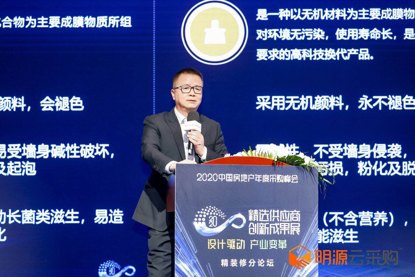 在本次峰會的精裝修行業(yè)論壇上,中華制漆執(zhí)行董事李廣中先生在現(xiàn)場發(fā)表了重要演講。李總指出中華制漆一直堅持以產(chǎn)品創(chuàng)新研發(fā)尋求行業(yè)突圍,以科研力量實現(xiàn)產(chǎn)品的迭代更新,以產(chǎn)品變革帶動企業(yè)轉(zhuǎn)型升級。迄今為止,中華制漆參與國家、行業(yè)標(biāo)準(zhǔn)制定200多項,研發(fā)產(chǎn)品種類達3000多種,并時刻保持與時俱進,在產(chǎn)品迭代中堅持聚焦市場、客戶、行業(yè)的多維需求。在今年疫情之下,中華制漆迅速推出“臻天然抗病毒無機礦物涂料”,滿足地產(chǎn)建筑涂裝的多層需求,搶占抗菌毒涂料市場,開創(chuàng)涂料行業(yè)新品類,以創(chuàng)新科技實力引領(lǐng)行業(yè)綠色可持續(xù)發(fā)展。